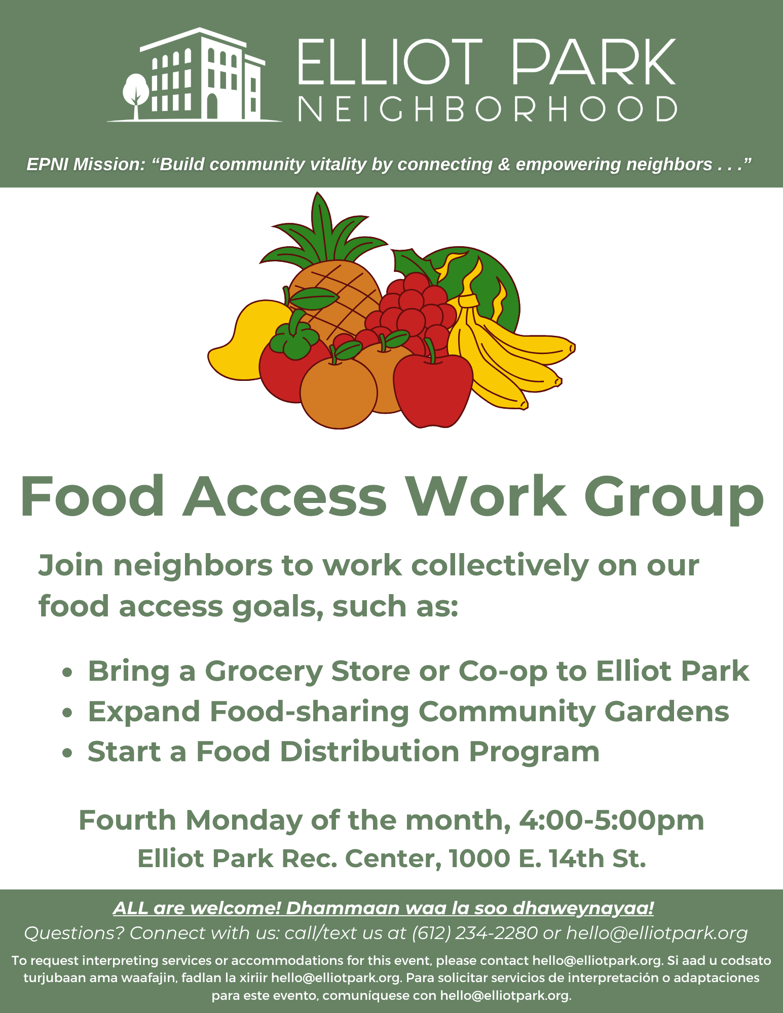 Join neighbors to work collectively on our food access goals, such as:
